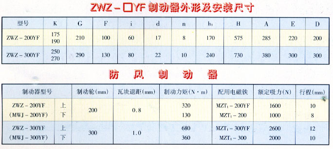 防風(fēng)制動器是在一臺制動器上裝有兩套制動裝置及動力裝囂,下面一套用于起重機(jī)的正常運行制動,該電磁鐵電源線接電機(jī),通電持續(xù)率為40%,操作頻率2400次/小時,其性能、效果和使用方法與普通制動器完全相同。上面一套為防風(fēng)制動裝置,電磁鐵電源線接控制室接觸器,通電持續(xù)率90%,它用于起重機(jī)主隔離開關(guān)斷開后的加強制動。在結(jié)構(gòu)上,它不影響正常制動裝置,起重機(jī)不工作時,兩套制動裝置都起制動作用,防止行車滑行。在作業(yè)過程中突遇大風(fēng),正常制動裝置制動不住時,可以適時地切斷起重機(jī)的主隔離開關(guān),讓防風(fēng)制動裝置起作用,加大了制動力矩,使行車穩(wěn)穩(wěn)當(dāng)當(dāng)矗立風(fēng)中,避免了事故的發(fā)生。它填補了國內(nèi)露天用軌行式起重機(jī)在工作狀態(tài)下防風(fēng)的空白,井且結(jié)構(gòu)簡單,安裝、調(diào)整方便。